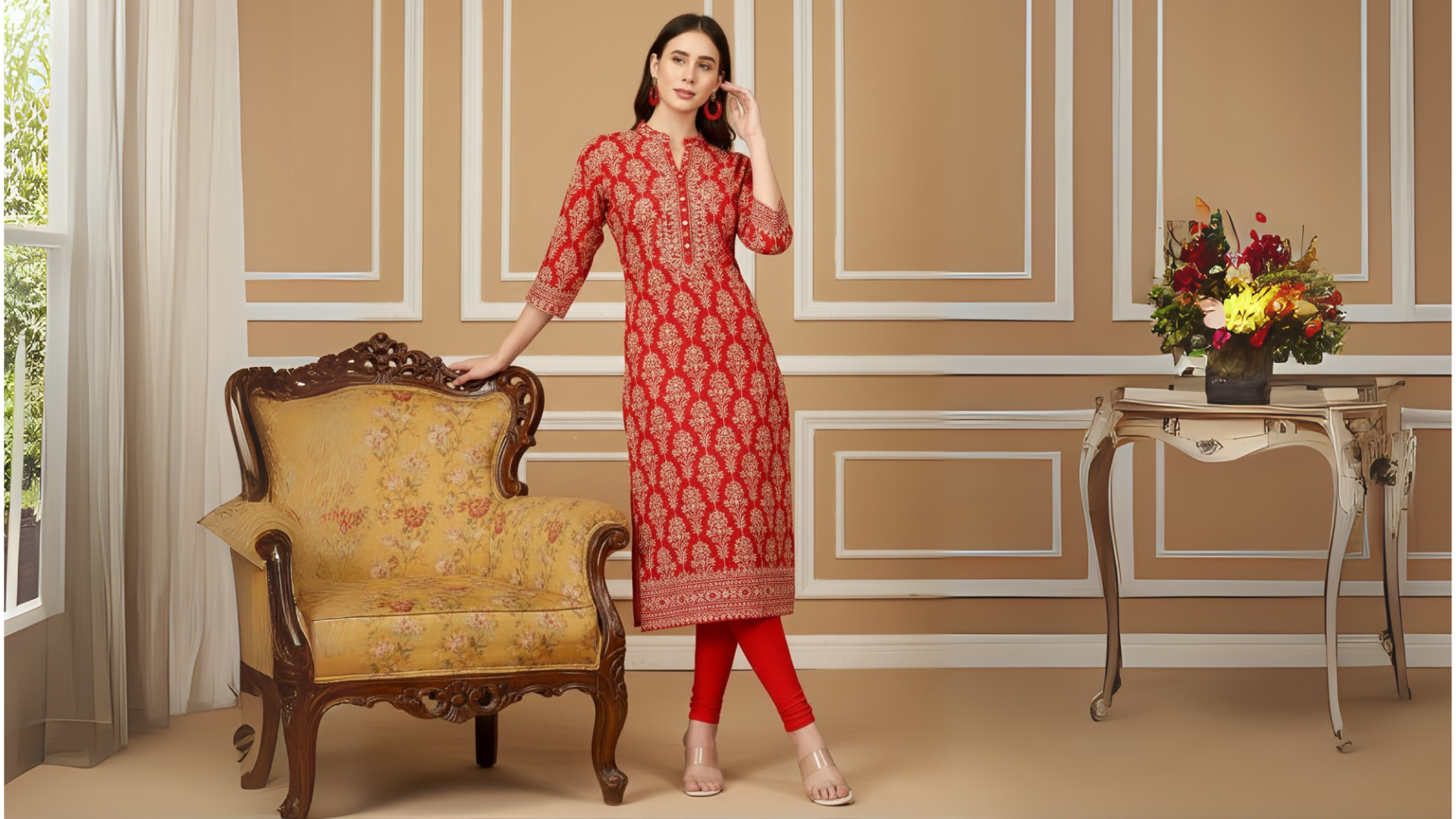 Red Floral Printed Straight Kurti – Elegant Rayon Blend for Everyday & Festive Wear