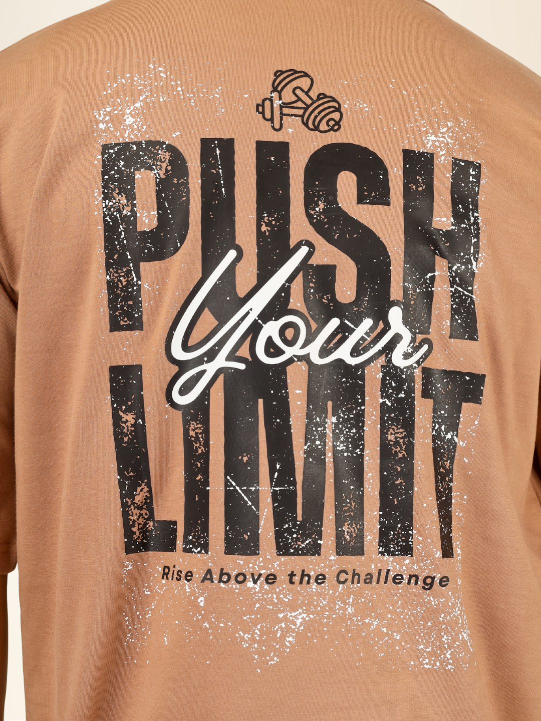 Men’s Oversized Graphic Cotton T-Shirt – Drop Shoulder Street Style Tee - Beige