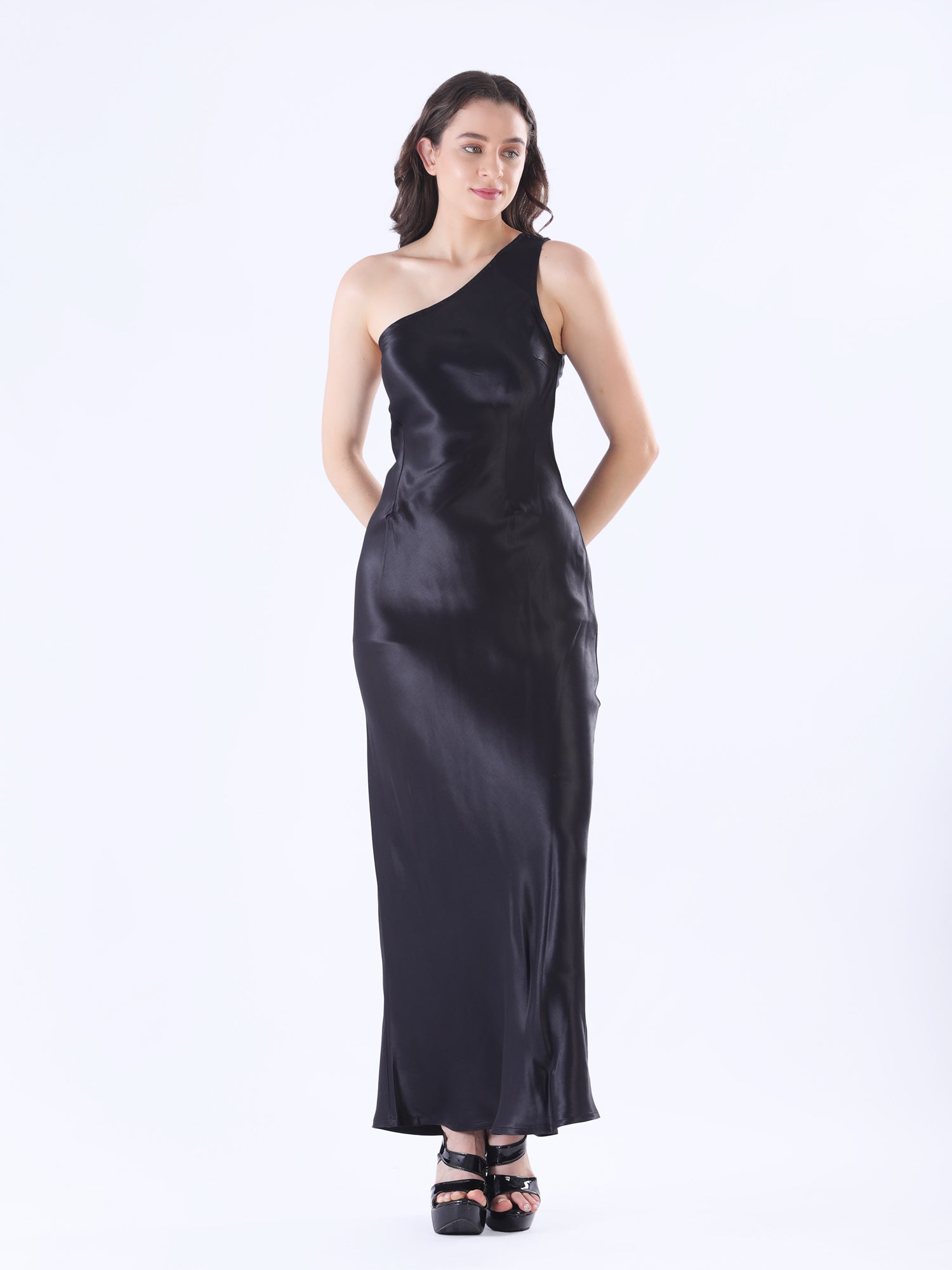 Elevate your evening look with this stunning Women's One Shoulder Satin Long Dress in classic black. Designed to flatter with its elegant silhouette and premium satin fabric, this gown is perfect for parties, special events, weddings, and formal occasions. The stylish one-shoulder design adds a contemporary touch while the floor-length skirt creates a graceful and sophisticated appearance. Pair it with your favorite heels and accessories for a complete ensemble.