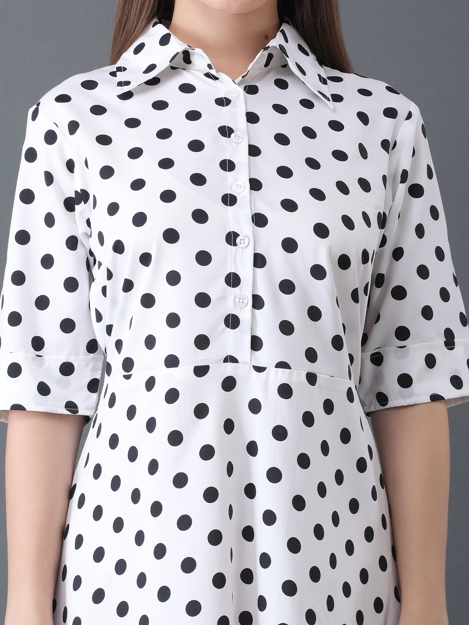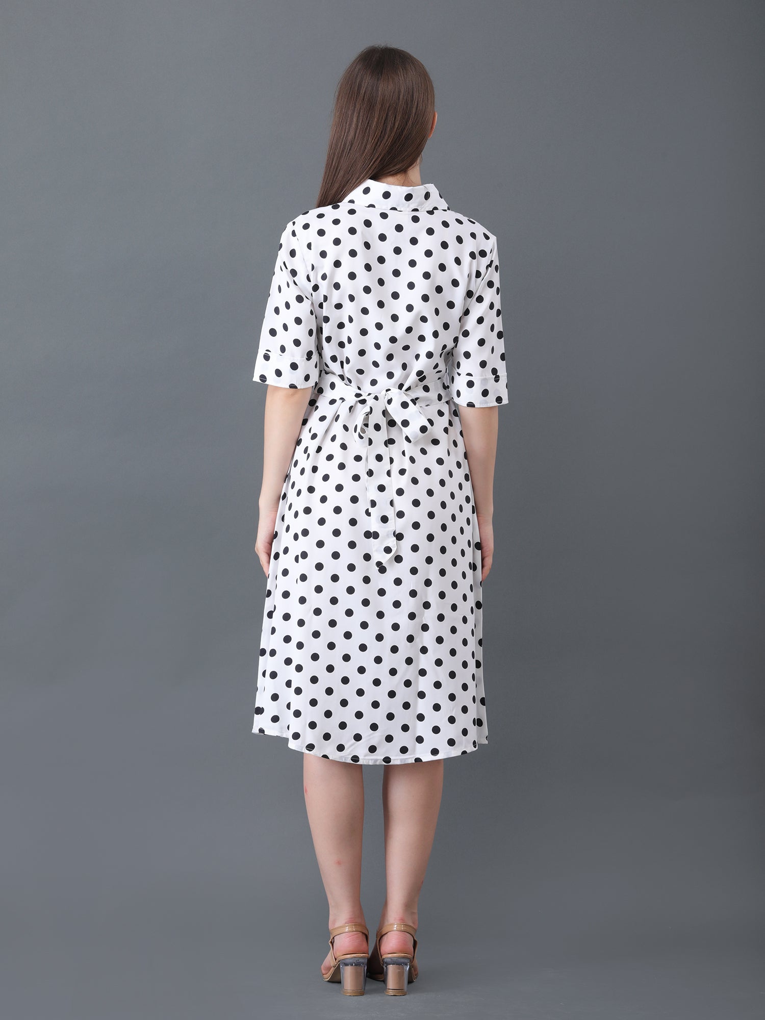 Women's White Polka Dot A-Line Midi Shirt Dress
