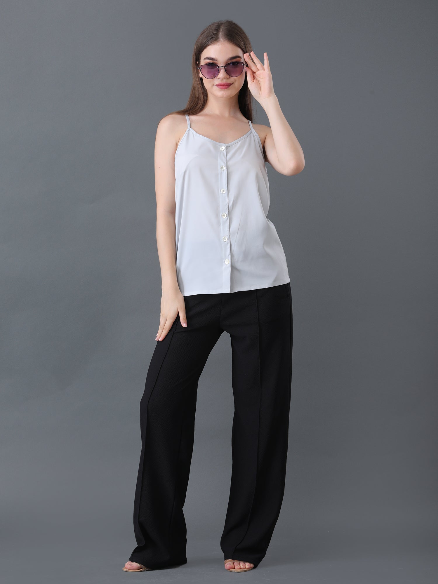 Stay cool and stylish with this women's white sleeveless camisole top, featuring delicate adjustable straps and a flattering button down front. Crafted from lightweight, breathable fabric, this casual top is perfect for summer days, beach outings, or layering under jackets and cardigans. Pair it effortlessly with jeans, shorts, or skirts for a versatile and chic look that never goes out of style